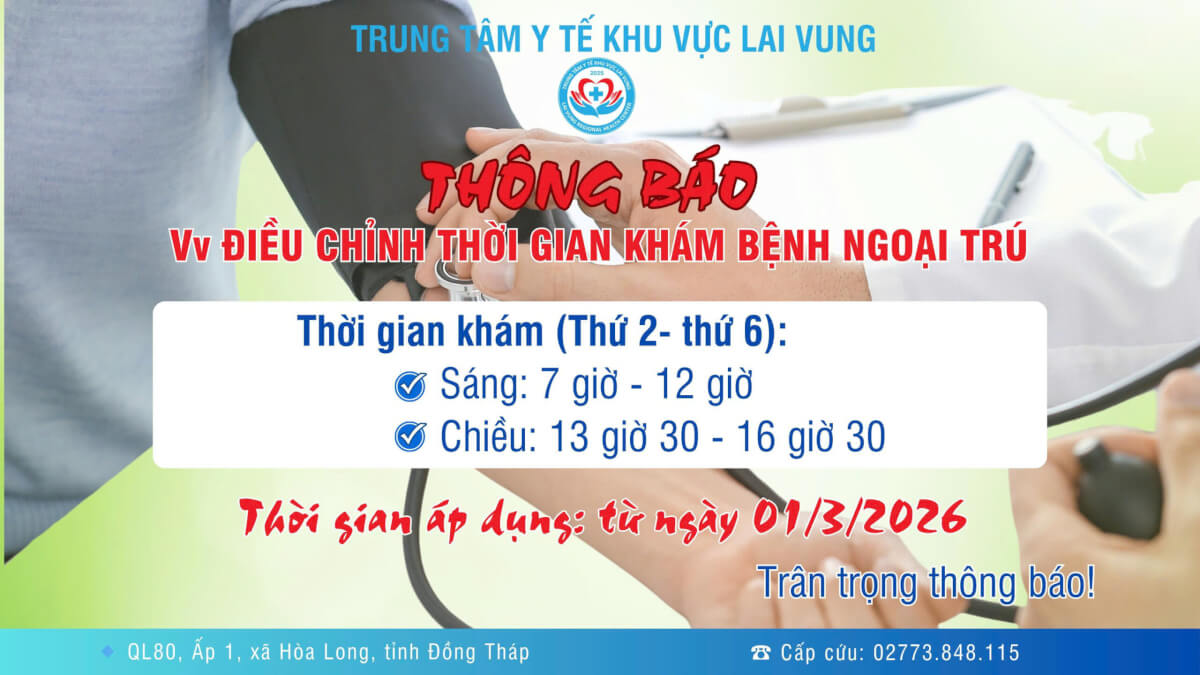 🔹 Trung tâm Y tế khu vực Lai Vung trân trọng thông báo đến Quý [...]