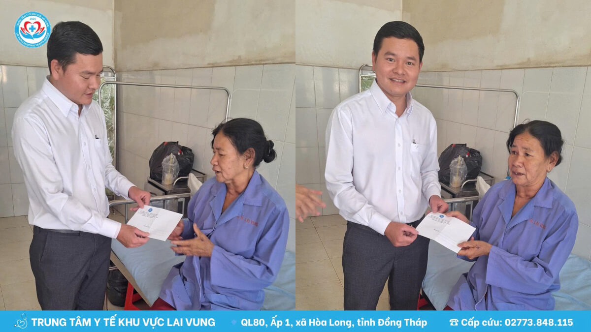 Chiều ngày 10/02/2026, trước thềm năm mới, ông Trần Quốc Trung và ông Nguyễn Văn Phan đại diện Bảo hiểm xã hội cơ sở Lai Vung đã đến thăm hỏi và trao tặng quà cho người bệnh đang điều trị nội trú tại Trung tâm Y tế khu vực Lai Vung.