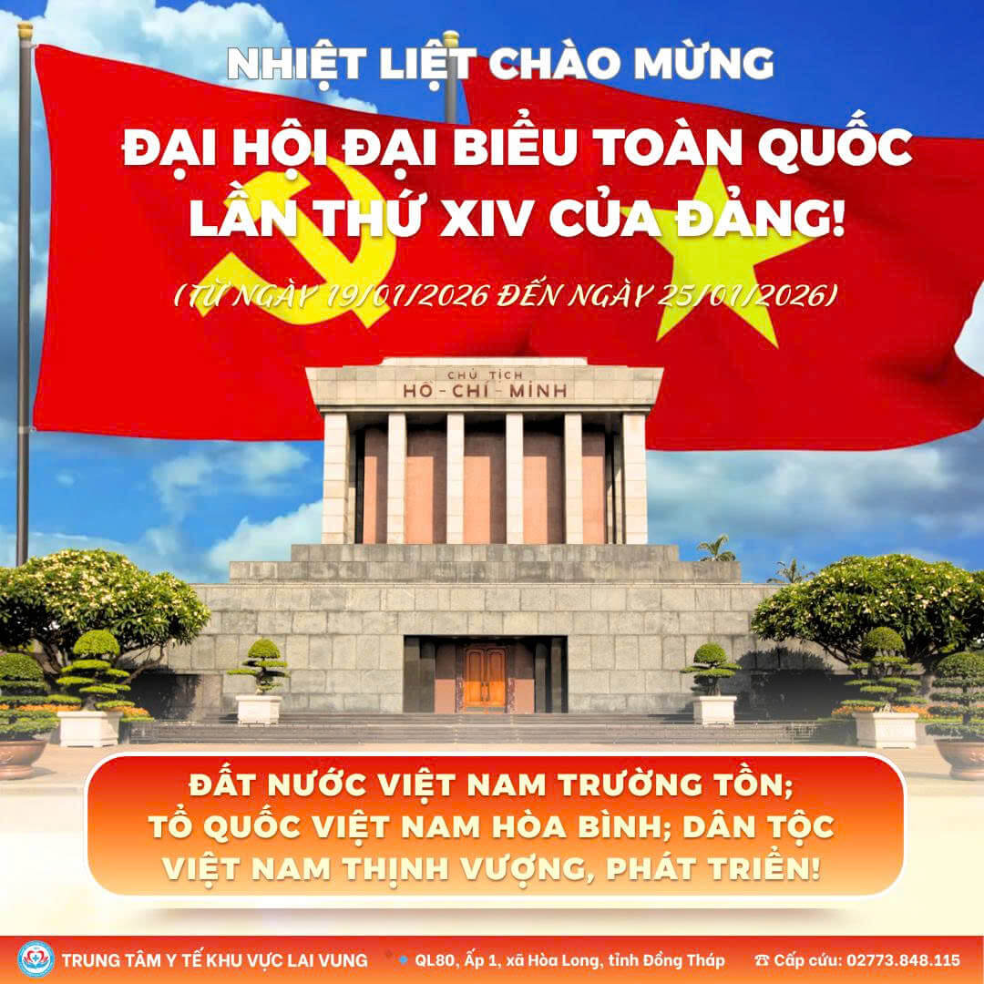 Toàn thể Đảng viên, viên chức Trung tâm Y tế khu vực Lai Vung, kính chúc Đại hội XIV của Đảng thành công tốt đẹp, mở ra chặng đường phát triển mới cho đất nước.