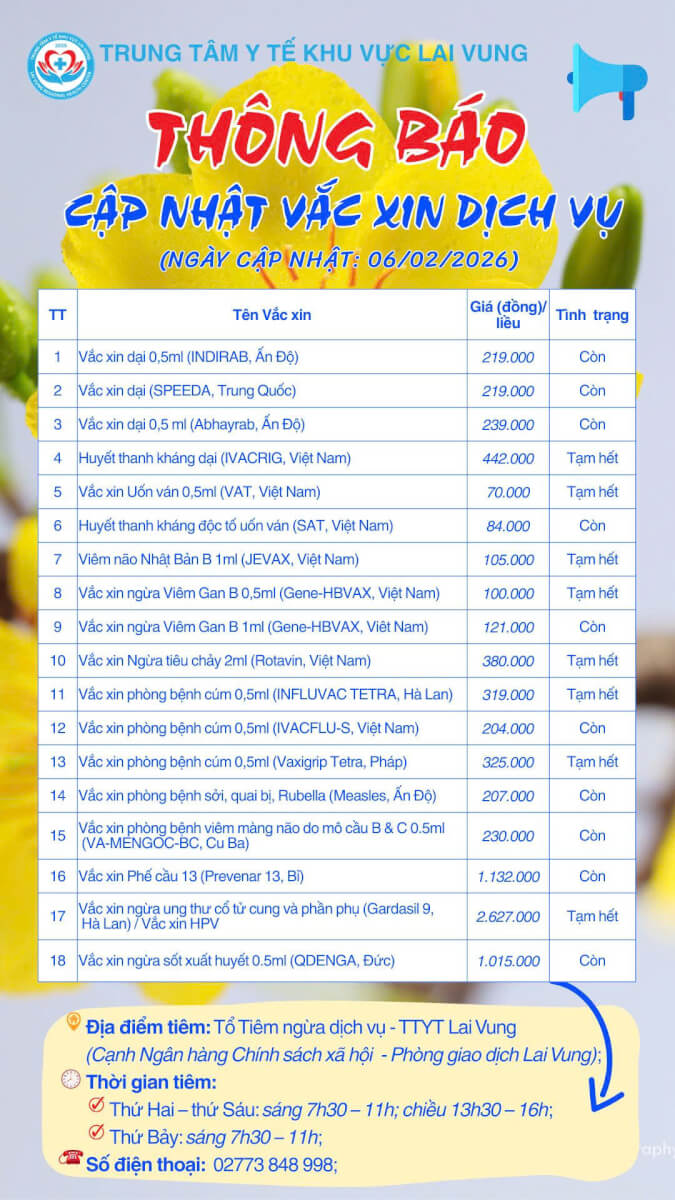 Trung tâm Y tế khu vực Lai Vung thông tin cập nhật vắc xin dịch [...]